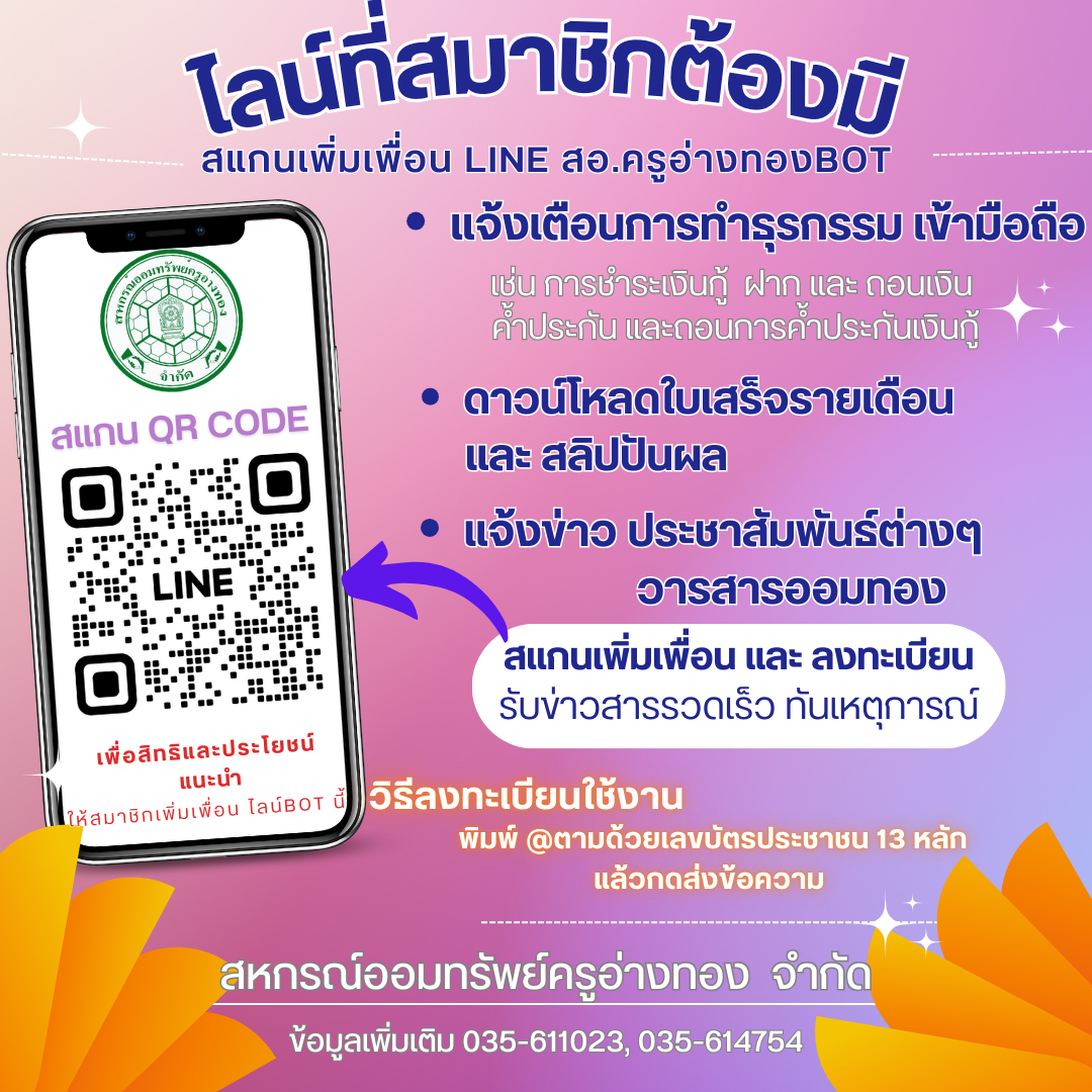 สอ.ครูอ่างทองBOT แจ้งเตือนของสหกรณ์ออมทรัพย์ครูอ่างทอง จำกัด